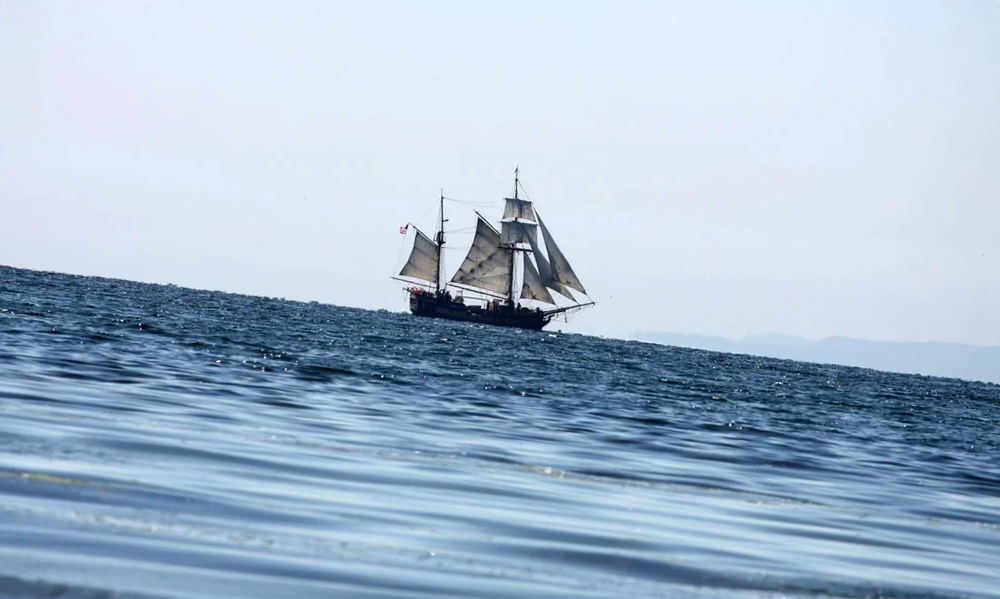 | Ćwiczenie 2 - Wczytaj do iPiccy zdjęcie statek.jpg i obróć go tak, aby poziom horyzontu był poziomy (jak na zdjęciu po prawej).Zapisz efekt pod nazwą "statek" w swoim folderze "Grafika1". |