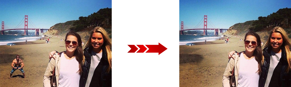 | Ćwiczenie 4 - Wczytaj do iPiccy zdjęcie plaza.jpg i usuń z niego kulturystę (podobnie jak na zdjęciu po prawej).Zapisz efekt pod nazwą "plaza" w swoim folderze "Grafika2". |